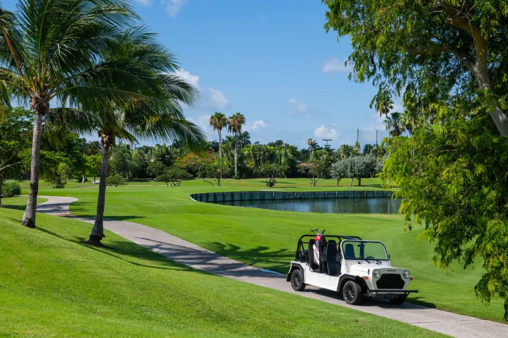 Whether you live in a golf course community or just like trying out your swing on the weekends, Moke America’s fully electric cars are the perfect way to get around the golf course. 18 holes, no problem!